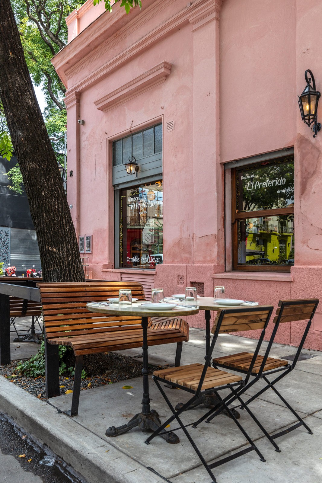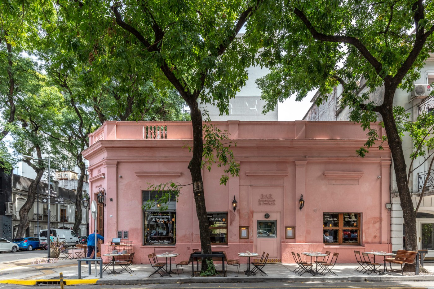 El Preferido de Palermo es un reconocido bar de tapas y bodegón de barrio en una de nuestras esquinas históricas donde frecuentaba el famoso escritor argentino Jorge Luis Borges. Pablo Rivero, dueño de la premiada parrilla Don Julio y el reconocido cocinero Guido Tassi reabrieron sus puertas para brindar servicio durante todo el día, es un lugar donde podés almorzar, merendar, cenar o simplemente picar una tapa con un vermut al paso. Así fue que fusionamos el restaurante con el bar proponiendo diferentes tipos de sitting, en mesas y en barra. Realizamos una remodelación del espacio manteniendo la esencia del clásico bodegón argentino, respetando su ADN, pero aggiornado. Es un proyecto de restauración con la intención de reivindicar nuestra identidad porteña.