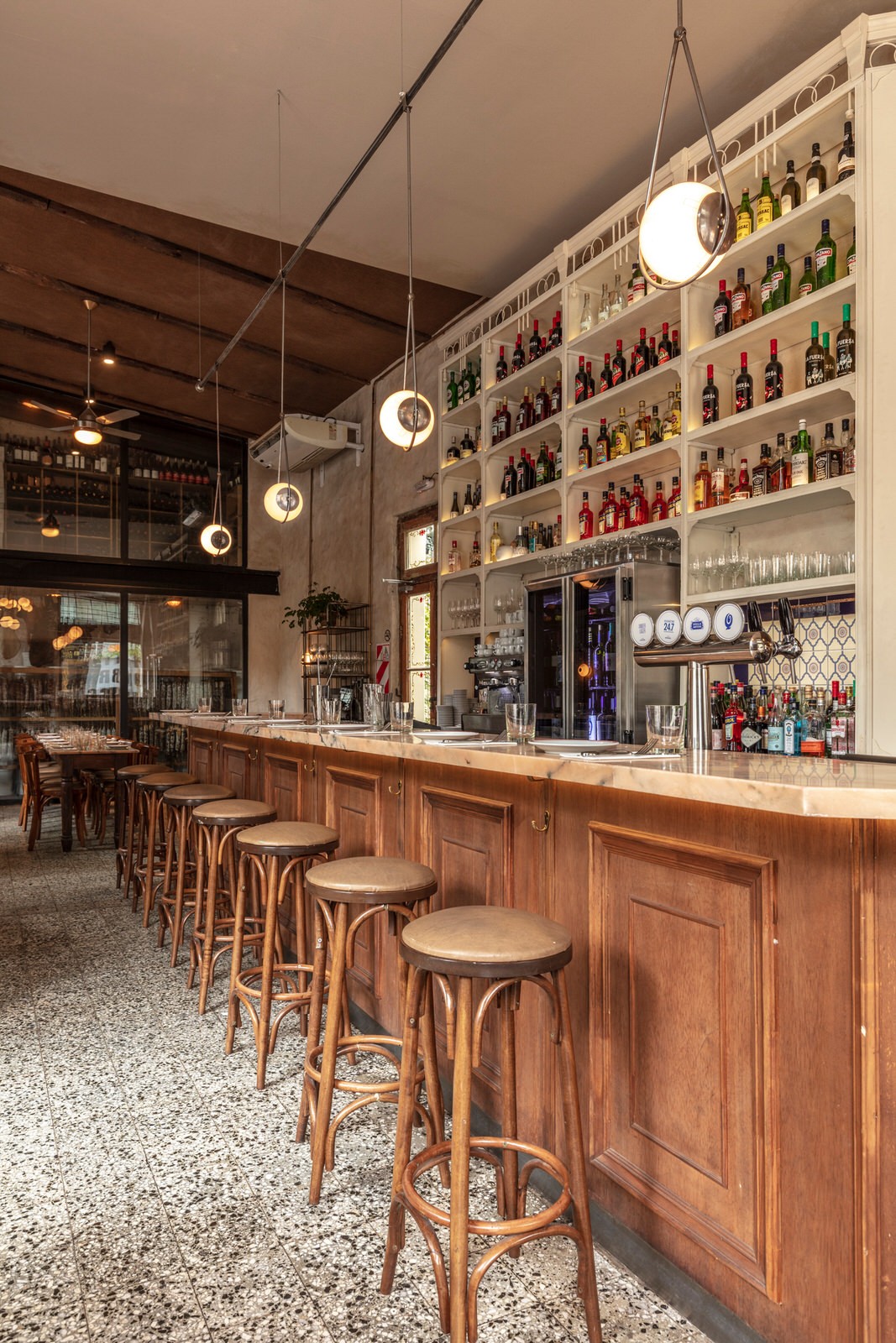 El Preferido de Palermo is a renowned tapas bar and “bodegon” in one of our historical corners, frequented by the famous Argentine writer, Jorge Luis Borges. Pablo Rivero, owner of the award-winning Don Julio grill and the renowned chef Guido Tassi, reopened its doors to provide service throughout the day. It is a place where you can have lunch, tea, dinner or simply take a tapa with vermut on the go. We merged the restaurant with the bar, offering different types of sitting, at tables and at the bar. We carry out a restoration of the venue keeping the essence of the classic Argentine “bodegón”, respecting its DNA, but improving it. It is a restoration project with the intention of recovering our city identity.